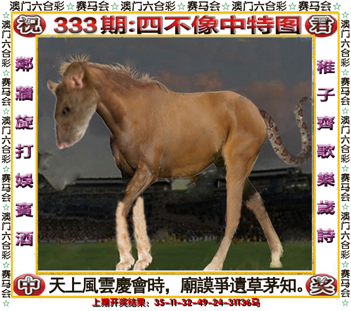327期红字暗码【隱於無形38 15 29 35】 解析:在行动前隐藏真实意图和实力。 解特:马狗龙兔牛羊 |